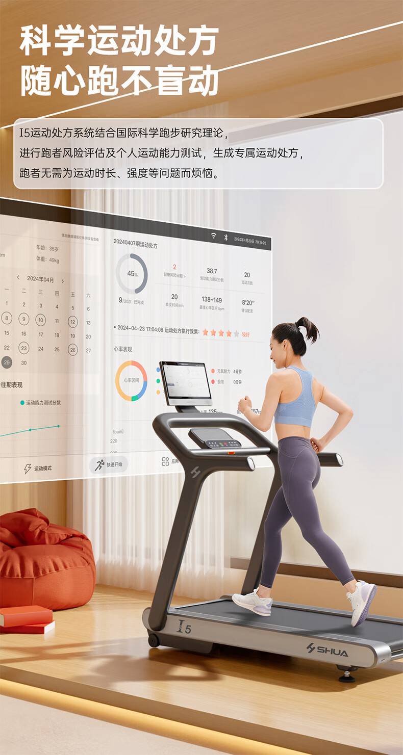 开元SH-T580T I5跑步机,科学运动处方,随心跑不盲动,可根据个人运动处方心率区间及跑者的实时心率情况,自动调节速度或坡度,犹如你的专属“配速员”让你随“心”而跑无负担。