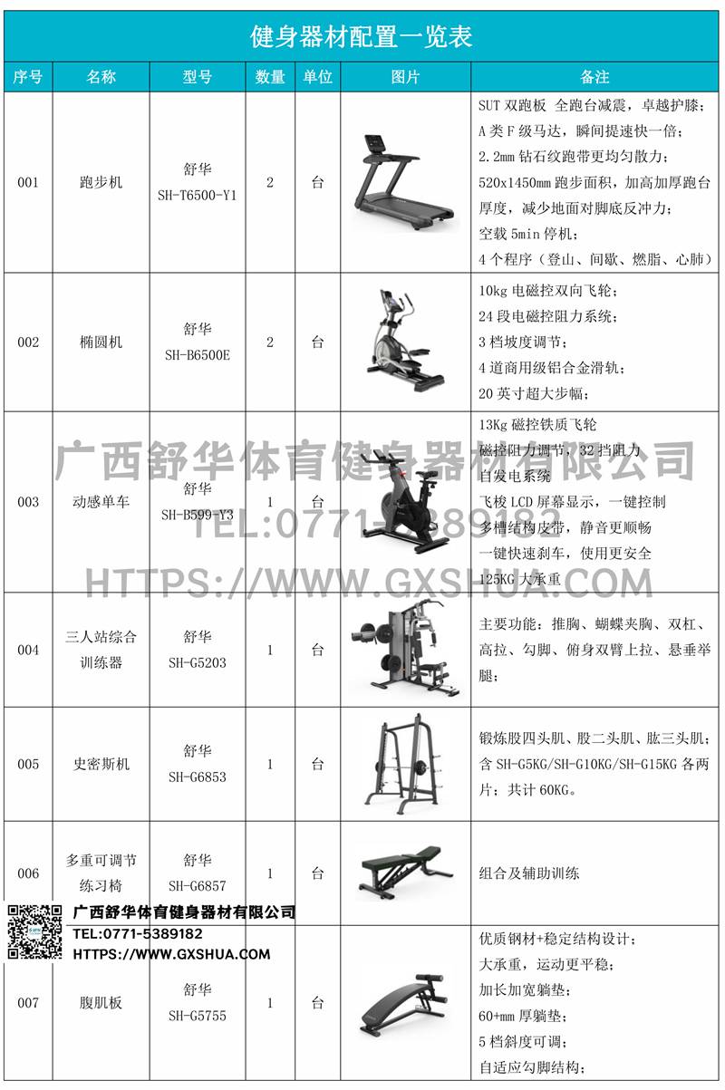 1.开元X5跑步机SH-T6500*2台-新X5拥有740mm的宽敞跑台,520mm宽跑带,跑步时更畅快无拘束。搭载SUT全跑台减震系统,针对跑步冲击区进行前、中、后以及双侧全方面避震,有效分散跑步时对跑者膝盖和踝关节的冲击,跑步也能更护膝。采用T18MM跑板+5MM减震棉+T12MM双层专利跑板减震结构设计的韧性跑板,承重力强,回弹舒适,带来缓震护足的舒适跑步体验。