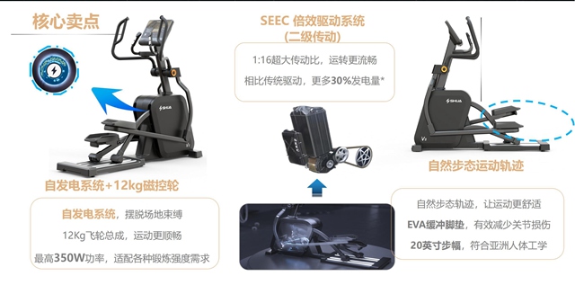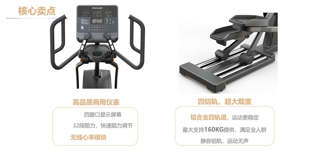 安全稳重,细节制胜。开元V8椭圆机是一款高安全系数的椭圆机,整体设计遵循人体工学科学,缓震踏板中添加减震层设计,能够有效减少运动冲击带来的关节损伤,且最大支持160kg载重,满足更多人群。手握心率监测、多功能置物架、自发电系统取代统电源......在细节上,新款椭圆机站在健身者角度,添加了不少设计者的巧思,为健身者带来更贴心的体验。