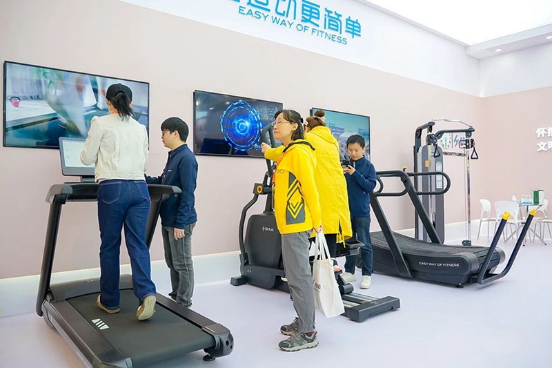 本届教育展,开元展出9款校园体育产品,包含备受关注的星火+校园户外运动路径、趣味投篮训练器以及跑步机、椭圆机、综合力量训练器等。